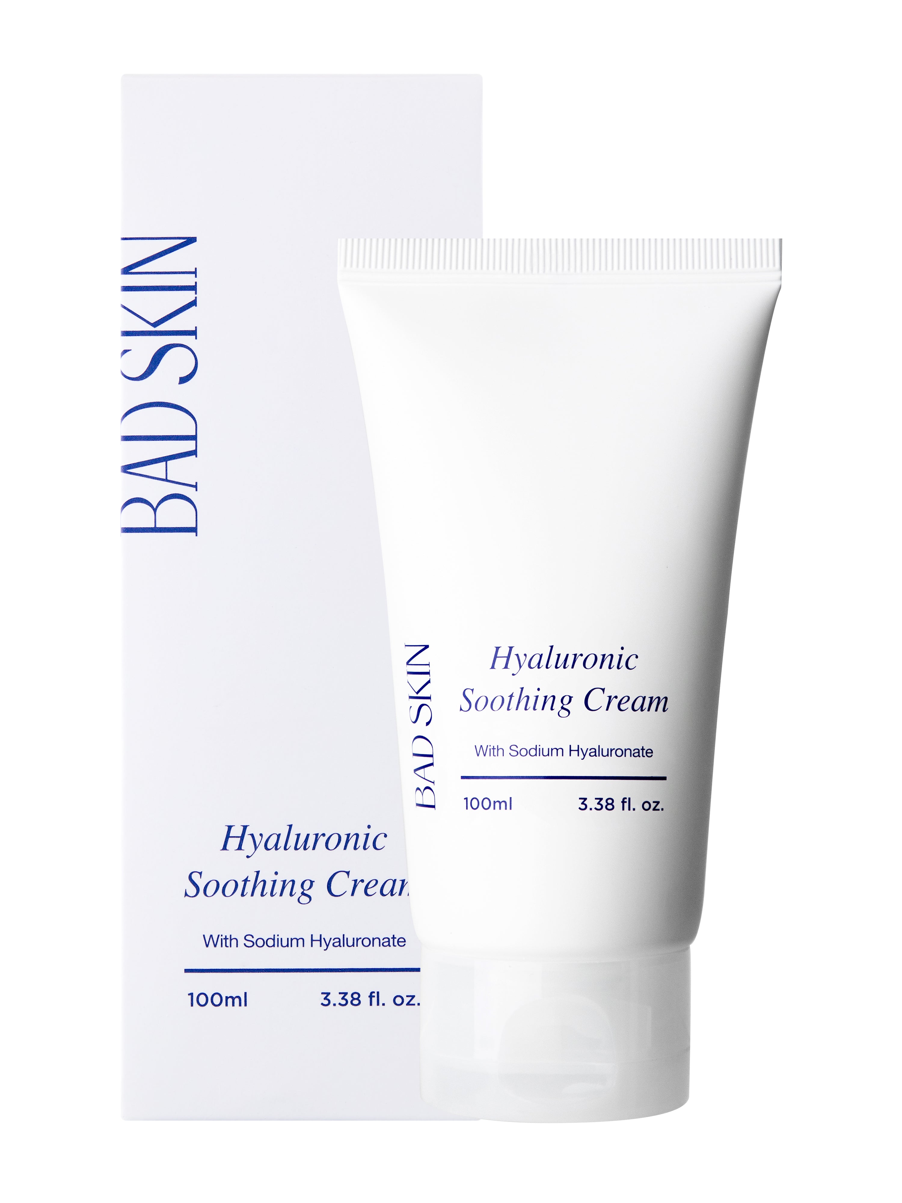 Transform your skincare routine with Bad Skin Hyaluronic Soothing Cream. This luxurious gel-cream combines 11 types of Hyaluronic Acid, 67.6% Neungam Hot Spring Water, and CERACARE AC-1 (5 Ceramides) to deliver intense hydration, brighten skin, and reduce wrinkles. Its refreshing texture melts into your skin, leaving it soft, radiant, and resilient.