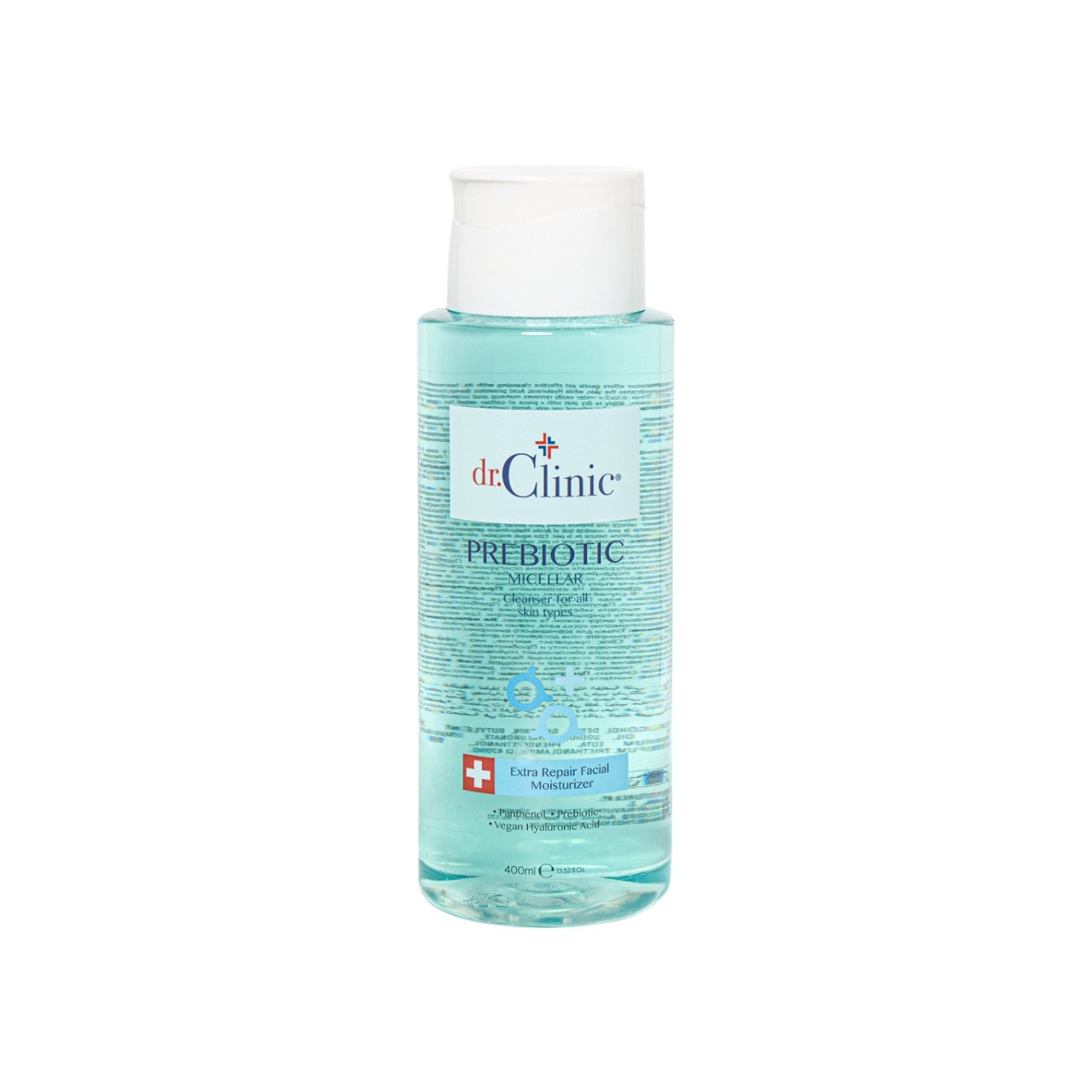 DR.CLINIC Prebiotic Micellar - Blue, All Skin Types, with Panthenol Features a special formula that provides effective care while gently cleansing the skin. Enriched with hyaluronic acid, prebiotics, and other active ingredients, it cleanses, moisturizes, and refreshes the skin. This micellar water easily removes makeup and impurities, supports the skin's natural balance, and leaves a fresh, clean feeling.